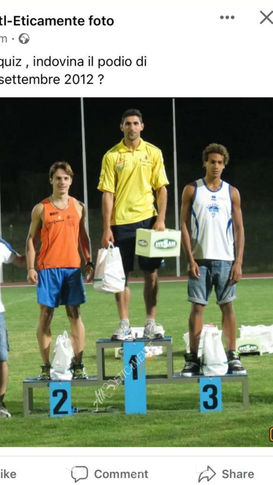 Atleta della nazionale con importanti risultati in passato, qui lo vedete nel 2012 davanti a due campioni – il secondo è Galbieri, campione europeo Under 23 mentre il terzo sul podio è il campione olimpico Marcell Jacobs, (andava più forte di loro)
